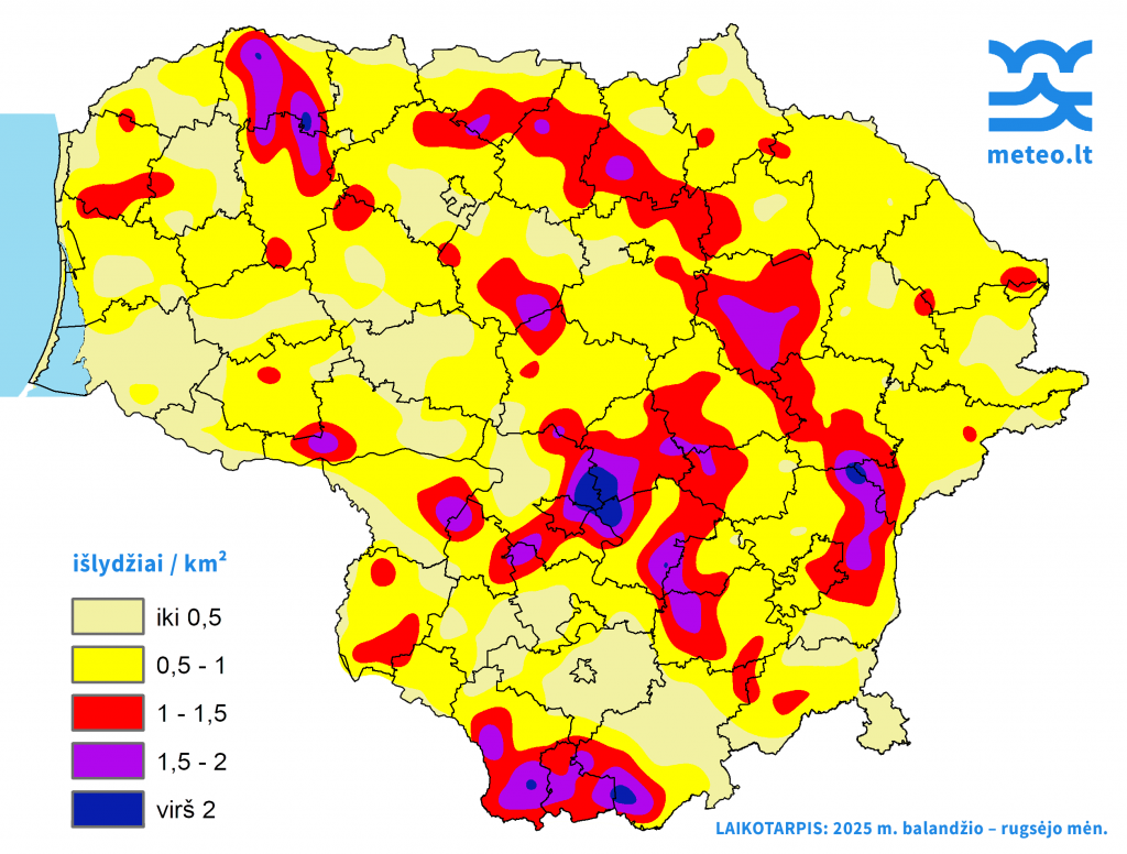 2025-10-06 | Kur per praėjusį pusmetį Lietuvoje žaibavo daugiausiai?