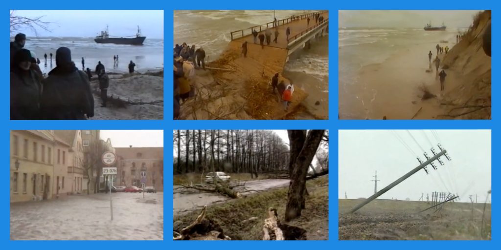 Dėl audros susidarė net iki 4–6 metrų aukščio bangos, į krantą ties Palanga buvo išmestas jūroje dreifavęs Norvegijos laivas „Seines“, kurį tik 2000 m. balandį (iškasus jūroje kanalą) pavyko ištempti atgal į jūrą. Stipriai nukentėjo šalies paplūdimiai ir kopagūbriai. Skaičiuojama, jog bangos tuomet nusinešė net ~4 mln. m³ smėlio. Buvo sustojusi Klaipėdos uosto veikla, užlietos kai kurios Klaipėdos senamiesčio gatvės. Nuvirto kalėdinė eglutė. Taip pat įgriuvo Palangos tiltas, o Neringoje smarkus vėjas nugriovė garsųjį Saulės laikrodį.