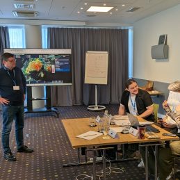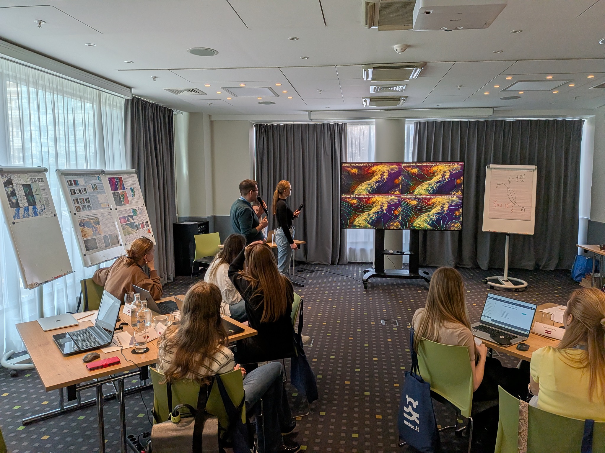 Kontaktinėje mokymų dalyje dalyviai turėjo galimybę dirbti su IT programa–simuliacija, kuri imituoja sinoptiko darbo vietą ir pamainos laiką. Šios užduoties metu kiekviena dalyvių pora turėjo pateikti kritulių prognozę nurodytam regionui.