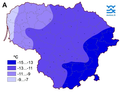 Sausio mėn. antrojo dešimtadienio vidutinė oro temperatūra Lietuvoje buvo -11,5 °C (neigiama 9,5° anomalija) (1 pav.). Tai šeštas pagal šaltumą antrasis sausio dešimtadienis Lietuvoje nuo 1961 m., paskutinį kartą šaltesnis šis dešimtadienis buvo 1987 m. (-18,2 °C), kai buvo fiksuotas šalčiausias sausis ir pirmas bei antras dešimtadieniai nuo 1961 m.