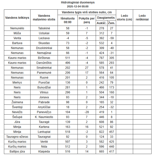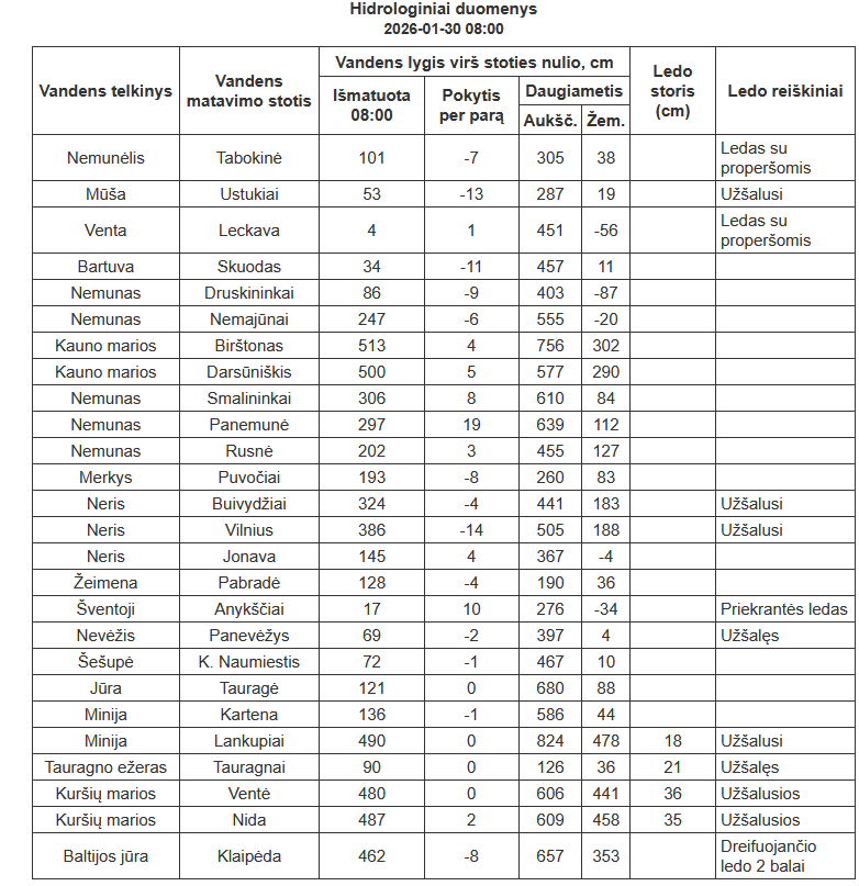 Operatyvi hidrologijos tinklo informacija (dar neįvertinus duomenų patikimumo). Oficialią informaciją galima gauti Lietuvos hidrometeorologijos tarnybos Hidrologinių stebėjimų skyriuje.