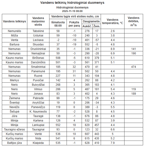 Operational hydrology network information (before data reliability is assessed). Official information can be obtainedmperature from regional parks