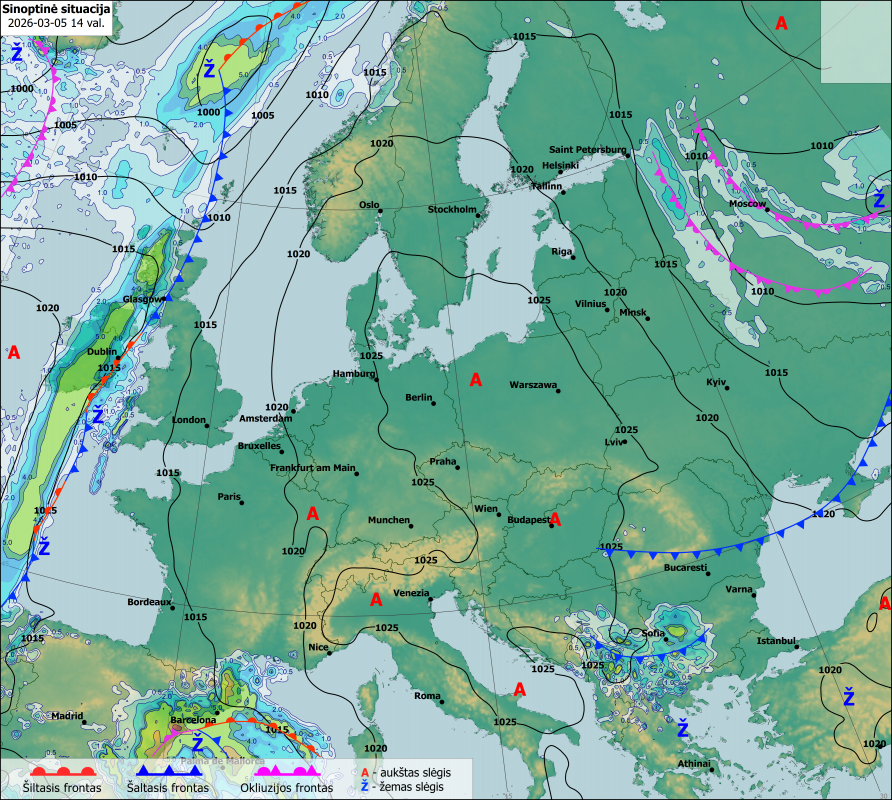 Penktadienį be kritulių. Naktį ir rytą vietomis plikledis, rūkas. Vėjas vakarinių krypčių, 3–8 m/s. Temperatūra naktį 2–7 laipsniai šalčio, dieną 2–7, kai kur iki 9 laipsnių šilumos.